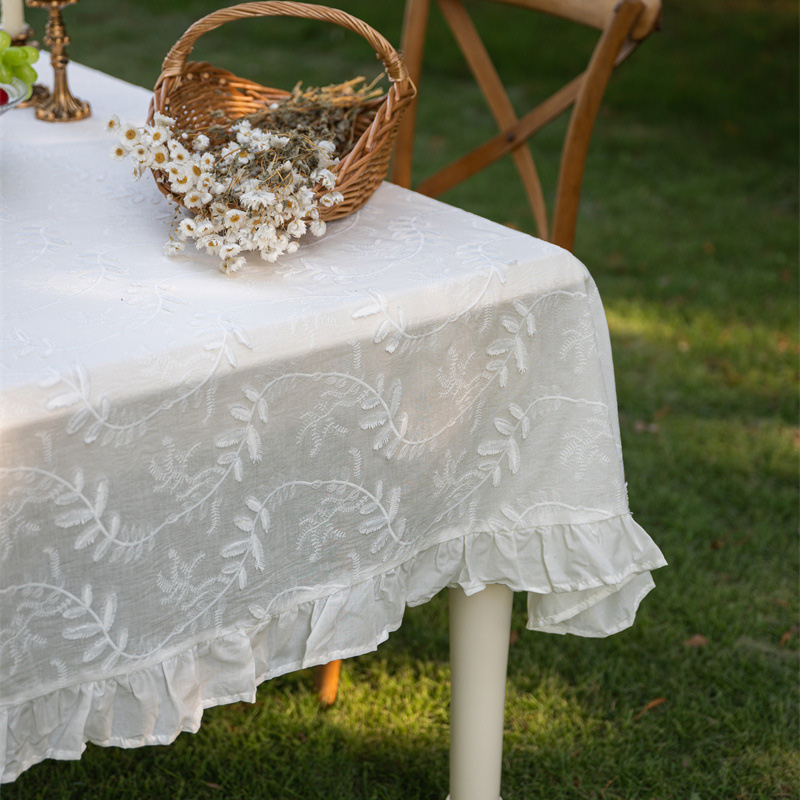 Soft cotton ruffled tablecloth for 6-seater dining table